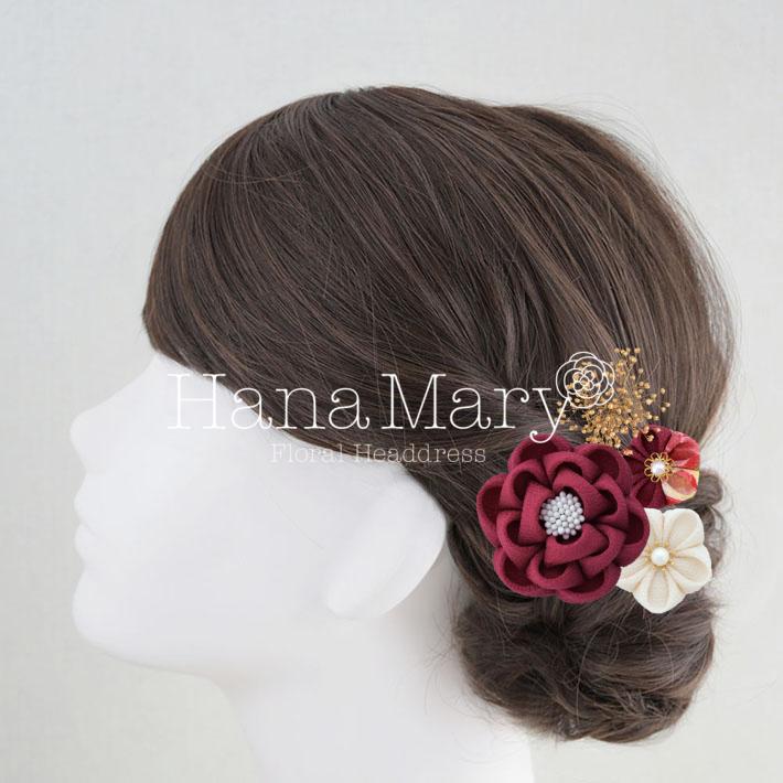 HanaMaryの髪飾りは生花をリアルに再現したアートフラワーと呼ばれるハイクオリティーな造花を使用しています。耐久性に優れ、成人式・卒業式やウェディングなどに何度でも繰り返し使用することができます。