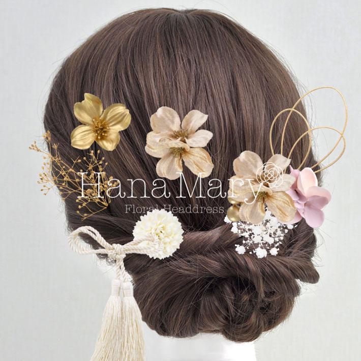 HanaMaryの髪飾りは生花をリアルに再現したアートフラワーと呼ばれるハイクオリティーな造花を使用しています。耐久性に優れ、成人式・卒業式やウェディングなどに何度でも繰り返し使用することができます。