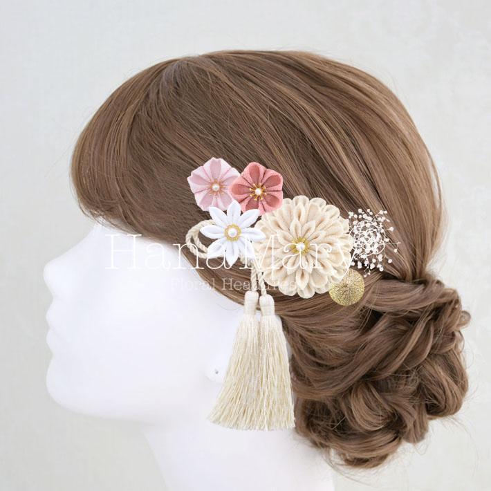 HanaMaryの髪飾りは生花をリアルに再現したアートフラワーと呼ばれるハイクオリティーな造花を使用しています。耐久性に優れ、成人式・卒業式やウェディングなどに何度でも繰り返し使用することができます。