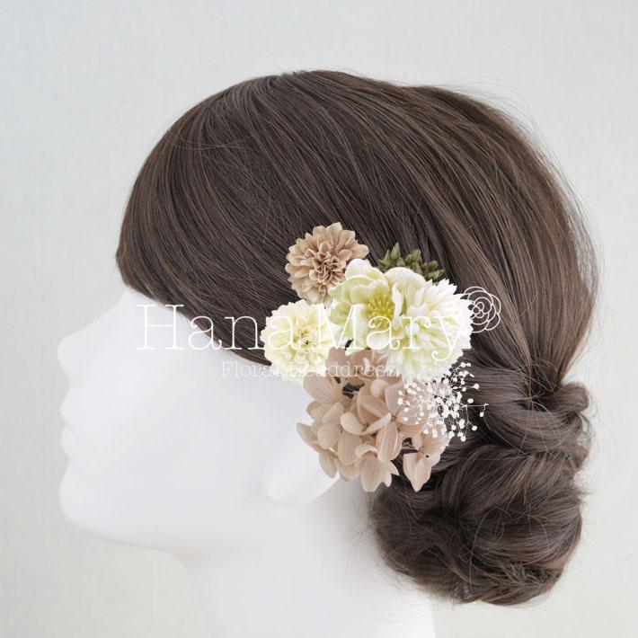 HanaMaryの髪飾りは生花をリアルに再現したアートフラワーと呼ばれるハイクオリティーな造花を使用しています。耐久性に優れ、成人式・卒業式やウェディングなどに何度でも繰り返し使用することができます。