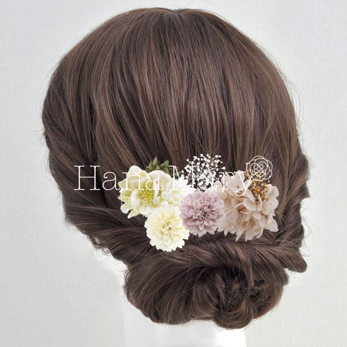 HanaMaryの髪飾りは生花をリアルに再現したアートフラワーと呼ばれるハイクオリティーな造花を使用しています。耐久性に優れ、成人式・卒業式やウェディングなどに何度でも繰り返し使用することができます。