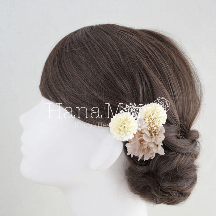 その日のヘアスタイルによって自由に一輪一輪配置できます。お花の数が多い場合でも、アメピンを追加して簡単にしっかりと固定できます。
