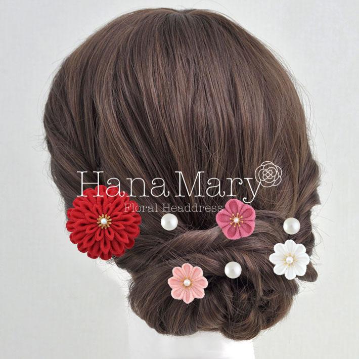 その日のヘアスタイルによって自由に一輪一輪配置できます。お花の数が多い場合でも、アメピンを追加して簡単にしっかりと固定できます。