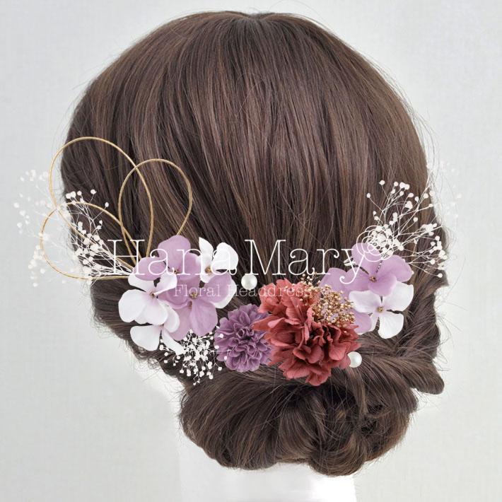 HanaMaryの髪飾りは生花をリアルに再現したアートフラワーと呼ばれるハイクオリティーな造花を使用しています。耐久性に優れ、成人式・卒業式やウェディングなどに何度でも繰り返し使用することができます。
