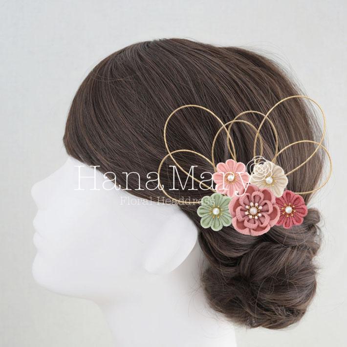 その日のヘアスタイルによって自由に一輪一輪配置できます。お花の数が多い場合でも、アメピンを追加して簡単にしっかりと固定できます。