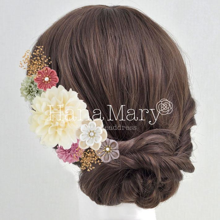 HanaMaryの髪飾りは生花をリアルに再現したアートフラワーと呼ばれるハイクオリティーな造花を使用しています。耐久性に優れ、成人式・卒業式やウェディングなどに何度でも繰り返し使用することができます。