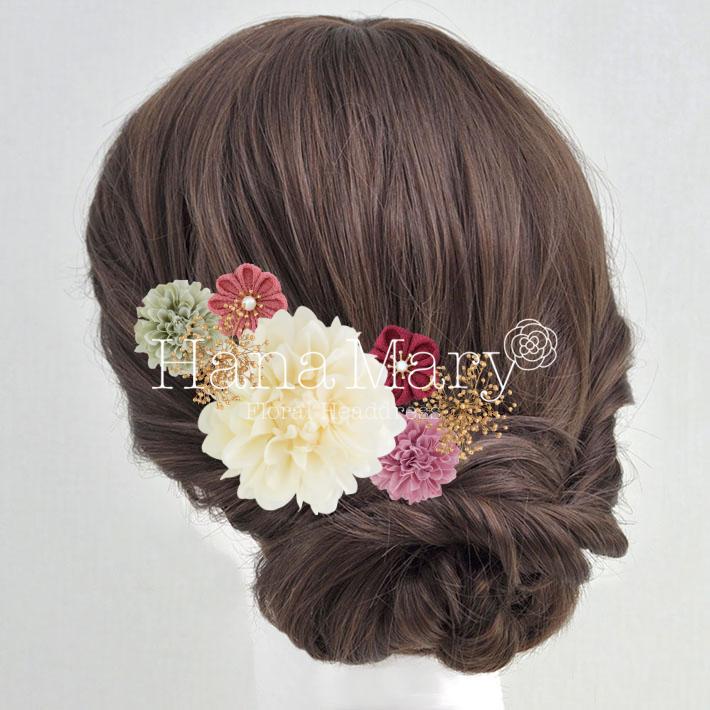 HanaMaryの髪飾りは生花をリアルに再現したアートフラワーと呼ばれるハイクオリティーな造花を使用しています。耐久性に優れ、成人式・卒業式やウェディングなどに何度でも繰り返し使用することができます。