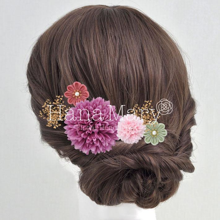 その日のヘアスタイルによって自由に一輪一輪配置できます。お花の数が多い場合でも、アメピンを追加して簡単にしっかりと固定できます。