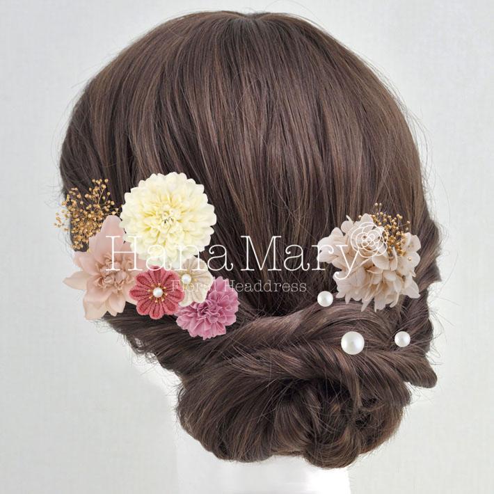 HanaMaryの髪飾りは生花をリアルに再現したアートフラワーと呼ばれるハイクオリティーな造花を使用しています。耐久性に優れ、成人式・卒業式やウェディングなどに何度でも繰り返し使用することができます。