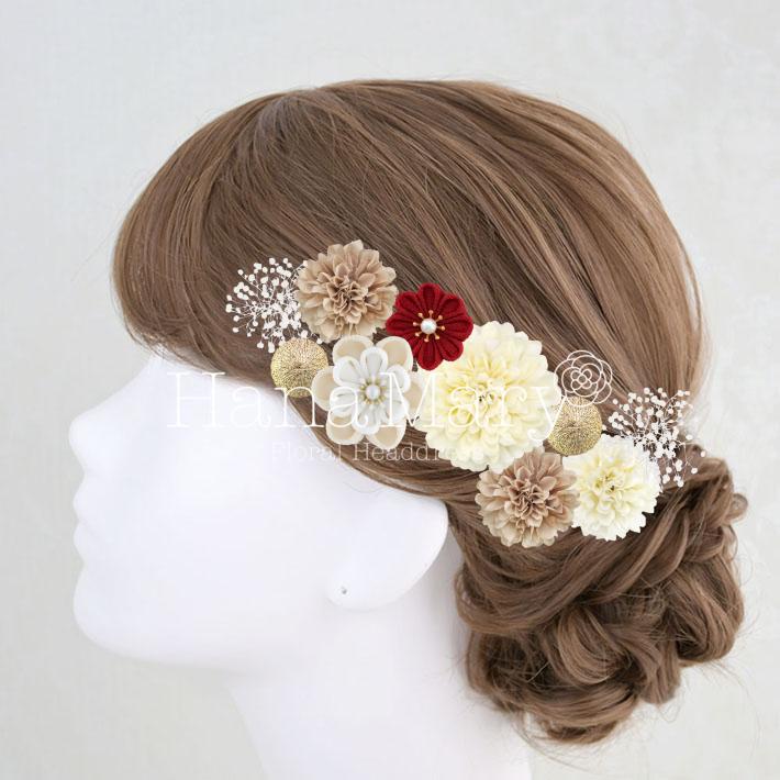 HanaMaryの髪飾りは生花をリアルに再現したアートフラワーと呼ばれるハイクオリティーな造花を使用しています。耐久性に優れ、成人式・卒業式やウェディングなどに何度でも繰り返し使用することができます。