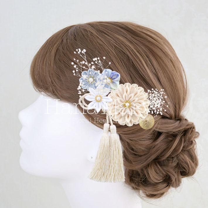 HanaMaryの髪飾りは生花をリアルに再現したアートフラワーと呼ばれるハイクオリティーな造花を使用しています。耐久性に優れ、成人式・卒業式やウェディングなどに何度でも繰り返し使用することができます。