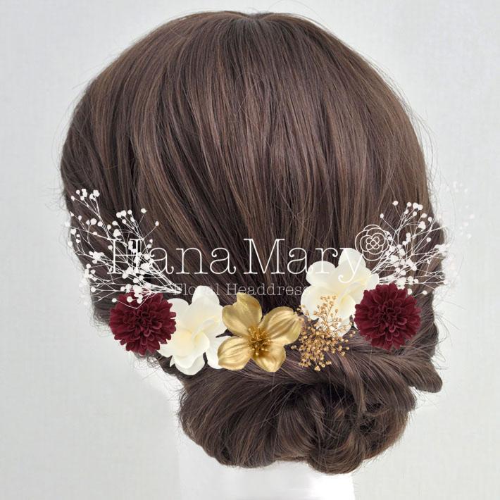 その日のヘアスタイルによって自由に一輪一輪配置できます。お花の数が多い場合でも、アメピンを追加して簡単にしっかりと固定できます。