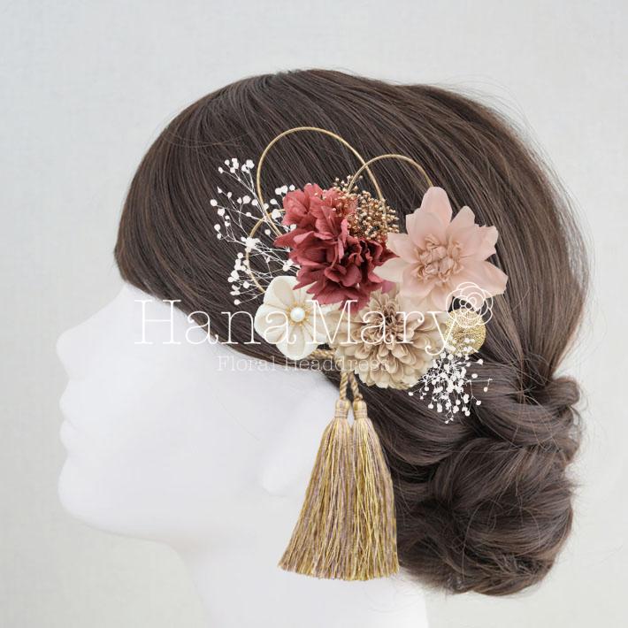 HanaMaryの髪飾りは生花をリアルに再現したアートフラワーと呼ばれるハイクオリティーな造花を使用しています。耐久性に優れ、成人式・卒業式やウェディングなどに何度でも繰り返し使用することができます。