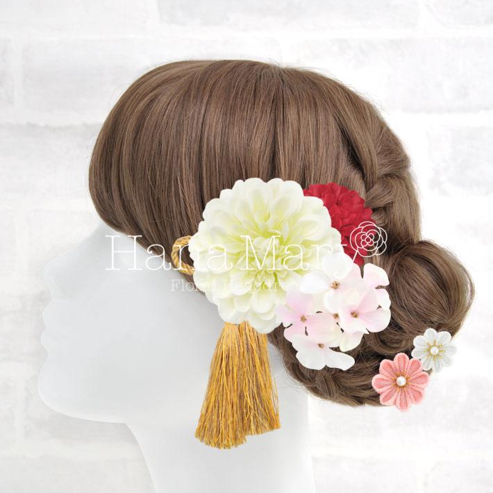 HanaMaryの髪飾りは生花をリアルに再現したアートフラワーと呼ばれるハイクオリティーな造花を使用しています。耐久性に優れ、成人式・卒業式やウェディングなどに何度でも繰り返し使用することができます。