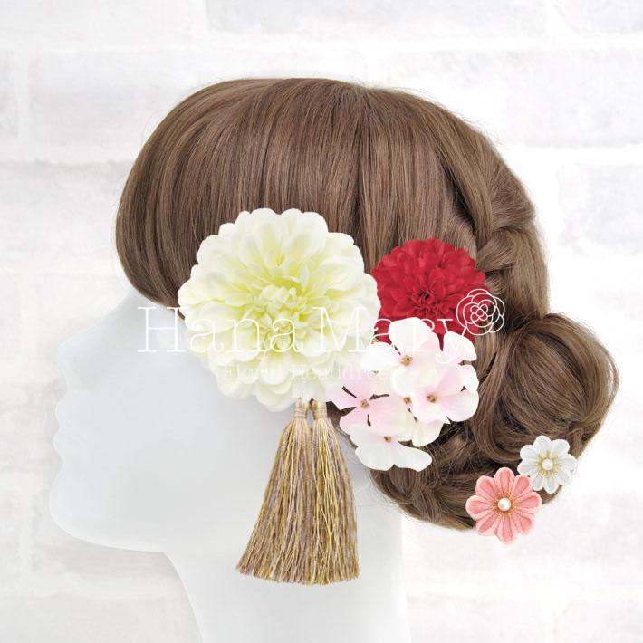 HanaMaryの髪飾りは生花をリアルに再現したアートフラワーと呼ばれるハイクオリティーな造花を使用しています。耐久性に優れ、成人式・卒業式やウェディングなどに何度でも繰り返し使用することができます。