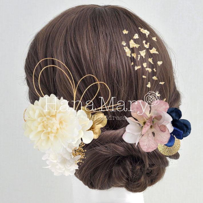 HanaMaryの髪飾りは生花をリアルに再現したアートフラワーと呼ばれるハイクオリティーな造花を使用しています。耐久性に優れ、成人式・卒業式やウェディングなどに何度でも繰り返し使用することができます。