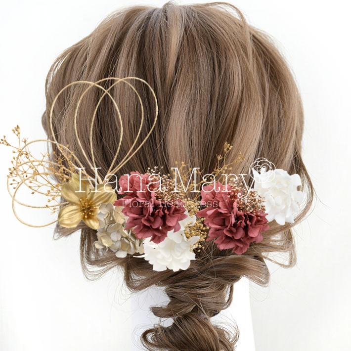 HanaMaryの髪飾りは生花をリアルに再現したアートフラワーと呼ばれるハイクオリティーな造花を使用しています。耐久性に優れ、成人式・卒業式やウェディングなどに何度でも繰り返し使用することができます。