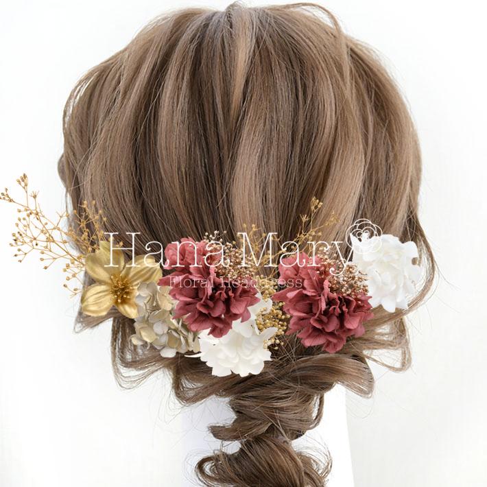 HanaMaryの髪飾りは生花をリアルに再現したアートフラワーと呼ばれるハイクオリティーな造花を使用しています。耐久性に優れ、成人式・卒業式やウェディングなどに何度でも繰り返し使用することができます。