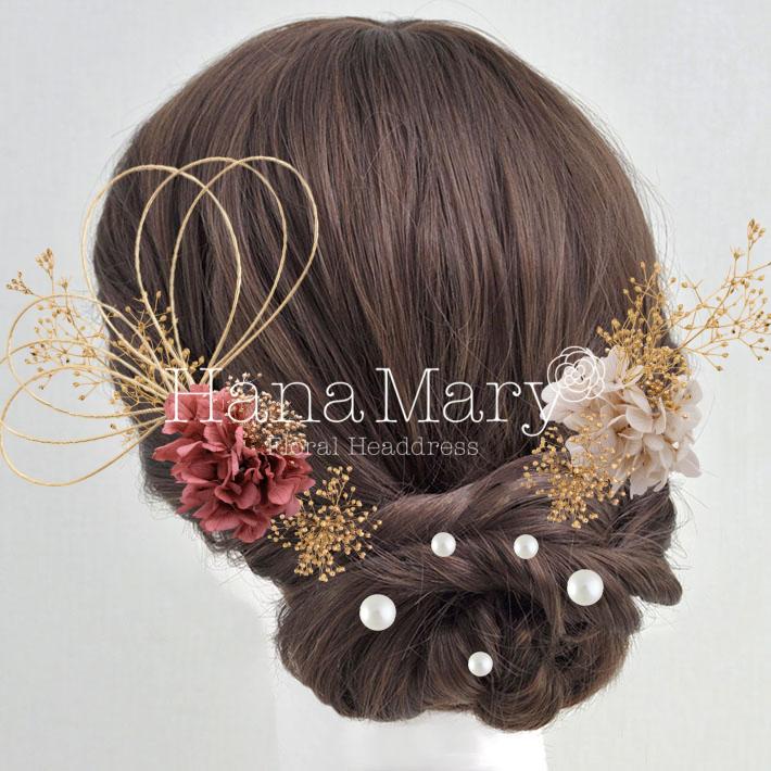 HanaMaryの髪飾りは生花をリアルに再現したアートフラワーと呼ばれるハイクオリティーな造花を使用しています。耐久性に優れ、成人式・卒業式やウェディングなどに何度でも繰り返し使用することができます。