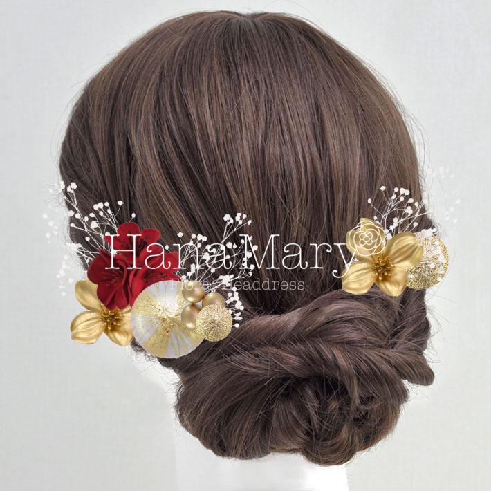 HanaMaryの髪飾りは生花をリアルに再現したアートフラワーと呼ばれるハイクオリティーな造花を使用しています。耐久性に優れ、成人式・卒業式やウェディングなどに何度でも繰り返し使用することができます。
