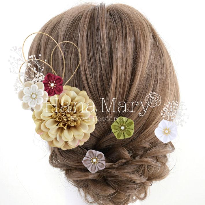 HanaMaryの髪飾りは生花をリアルに再現したアートフラワーと呼ばれるハイクオリティーな造花を使用しています。耐久性に優れ、成人式・卒業式やウェディングなどに何度でも繰り返し使用することができます。