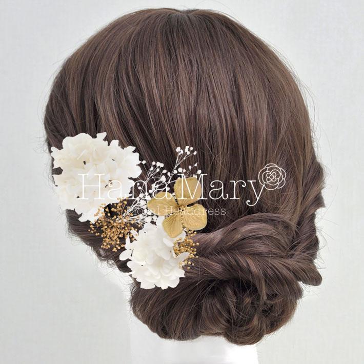 HanaMaryの髪飾りは生花をリアルに再現したアートフラワーと呼ばれるハイクオリティーな造花を使用しています。耐久性に優れ、成人式・卒業式やウェディングなどに何度でも繰り返し使用することができます。