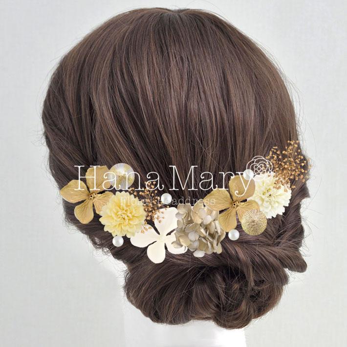 HanaMaryの髪飾りは生花をリアルに再現したアートフラワーと呼ばれるハイクオリティーな造花を使用しています。耐久性に優れ、成人式・卒業式やウェディングなどに何度でも繰り返し使用することができます。