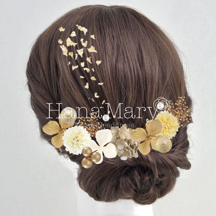 HanaMaryの髪飾りは生花をリアルに再現したアートフラワーと呼ばれるハイクオリティーな造花を使用しています。耐久性に優れ、成人式・卒業式やウェディングなどに何度でも繰り返し使用することができます。