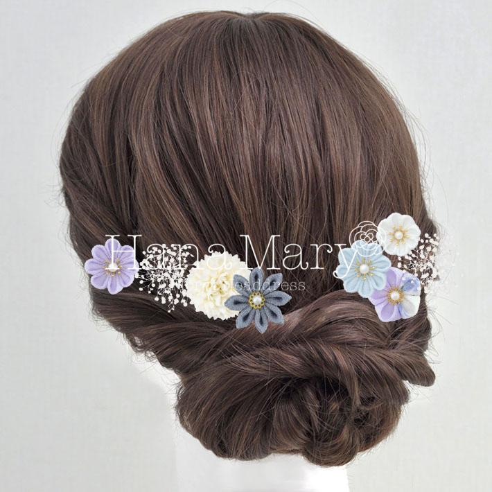 その日のヘアスタイルによって自由に一輪一輪配置できます。お花の数が多い場合でも、アメピンを追加して簡単にしっかりと固定できます。