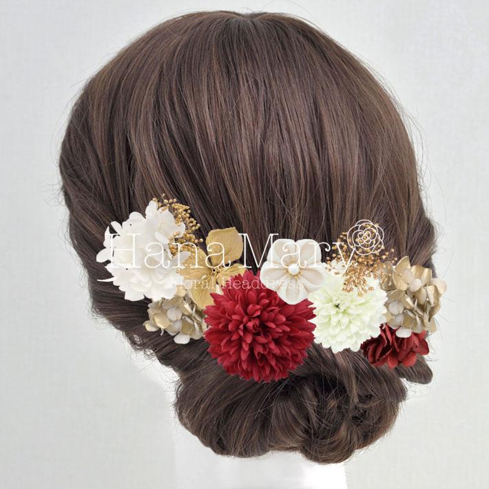 HanaMaryの髪飾りは生花をリアルに再現したアートフラワーと呼ばれるハイクオリティーな造花を使用しています。耐久性に優れ、成人式・卒業式やウェディングなどに何度でも繰り返し使用することができます。