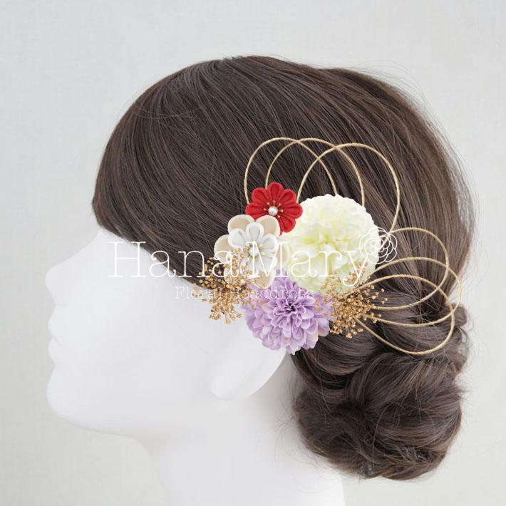 HanaMaryの髪飾りは生花をリアルに再現したアートフラワーと呼ばれるハイクオリティーな造花を使用しています。耐久性に優れ、成人式・卒業式やウェディングなどに何度でも繰り返し使用することができます。