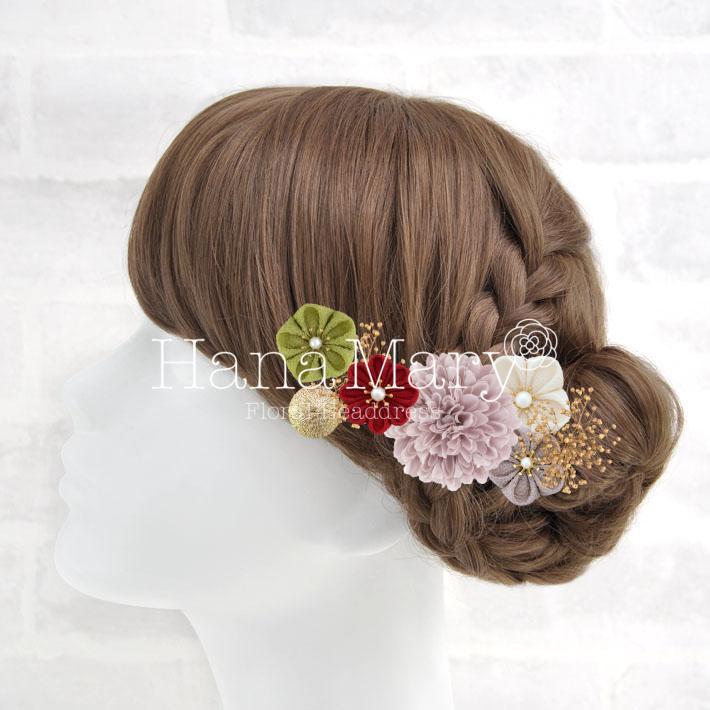 HanaMaryの髪飾りは生花をリアルに再現したアートフラワーと呼ばれるハイクオリティーな造花を使用しています。耐久性に優れ、成人式・卒業式やウェディングなどに何度でも繰り返し使用することができます。