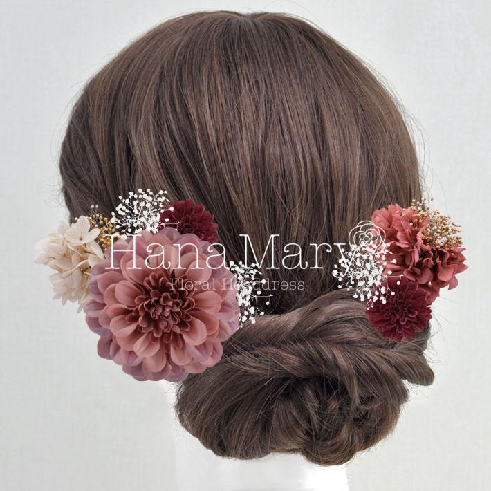 HanaMaryの髪飾りは生花をリアルに再現したアートフラワーと呼ばれるハイクオリティーな造花を使用しています。耐久性に優れ、成人式・卒業式やウェディングなどに何度でも繰り返し使用することができます。