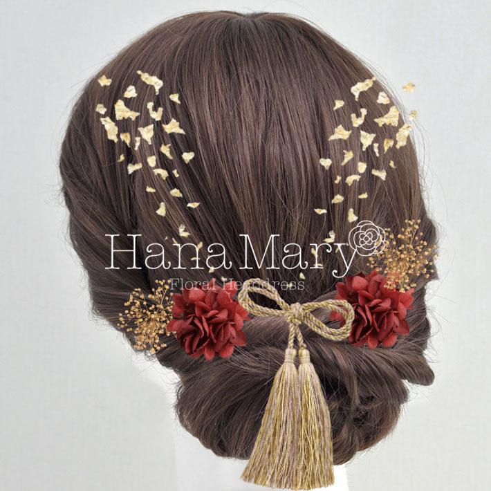 HanaMaryの髪飾りは生花をリアルに再現したアートフラワーと呼ばれるハイクオリティーな造花を使用しています。耐久性に優れ、成人式・卒業式やウェディングなどに何度でも繰り返し使用することができます。