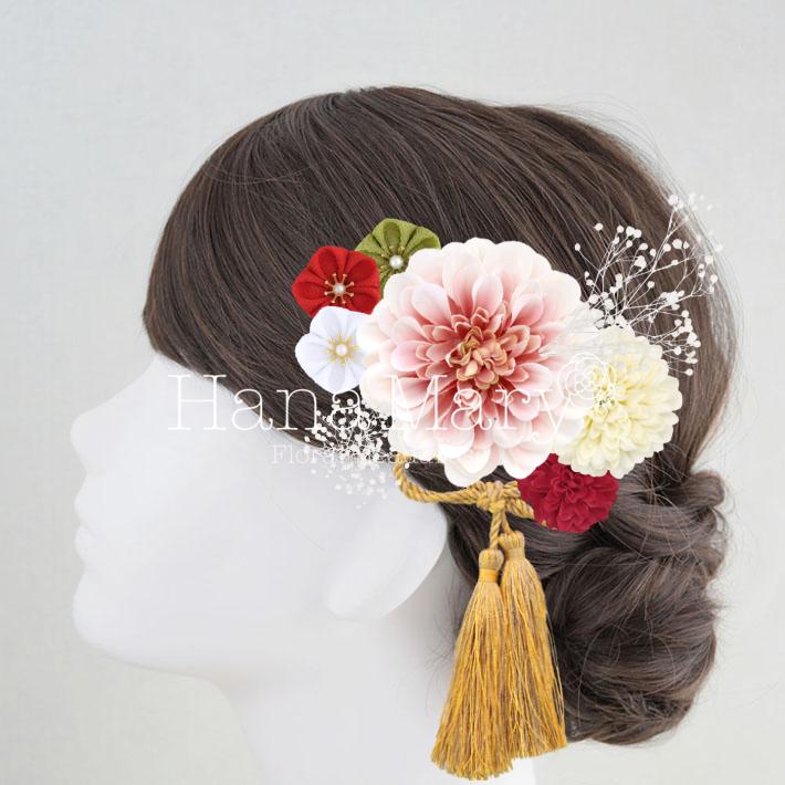 HanaMaryの髪飾りは生花をリアルに再現したアートフラワーと呼ばれるハイクオリティーな造花を使用しています。耐久性に優れ、成人式・卒業式やウェディングなどに何度でも繰り返し使用することができます。