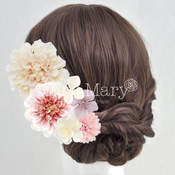 その日のヘアスタイルによって自由に一輪一輪配置できます。お花の数が多い場合でも、アメピンを追加して簡単にしっかりと固定できます。
