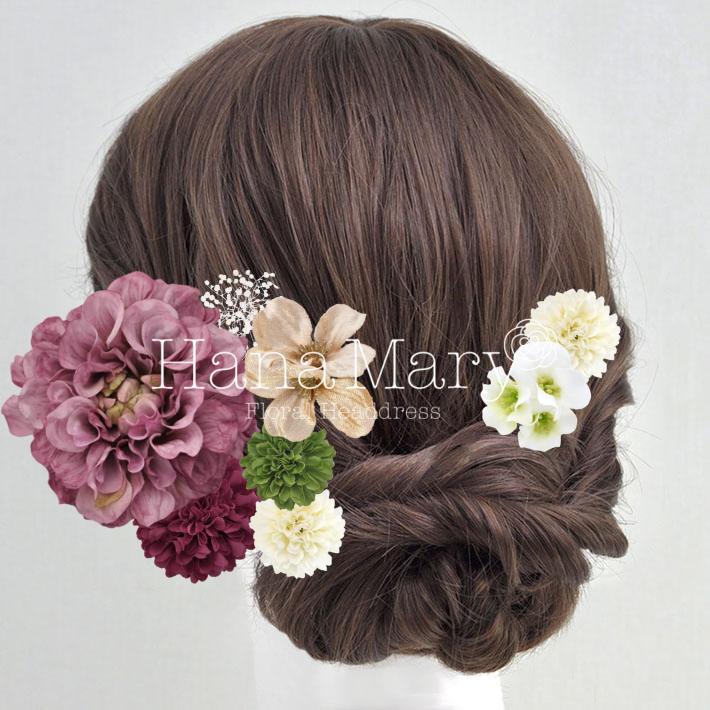 その日のヘアスタイルによって自由に一輪一輪配置できます。お花の数が多い場合でも、アメピンを追加して簡単にしっかりと固定できます。