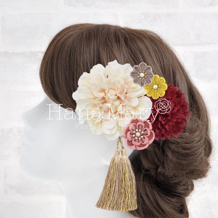 HanaMaryの髪飾りは生花をリアルに再現したアートフラワーと呼ばれるハイクオリティーな造花を使用しています。耐久性に優れ、成人式・卒業式やウェディングなどに何度でも繰り返し使用することができます。