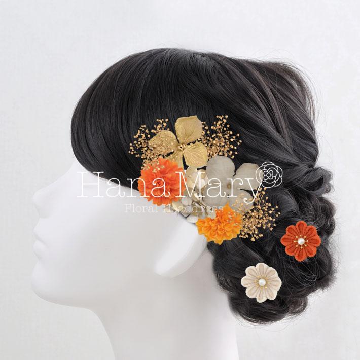 HanaMaryの髪飾りは生花をリアルに再現したアートフラワーと呼ばれるハイクオリティーな造花を使用しています。耐久性に優れ、成人式・卒業式やウェディングなどに何度でも繰り返し使用することができます。