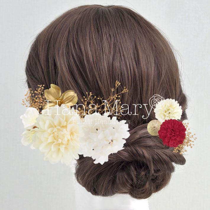 HanaMaryの髪飾りは生花をリアルに再現したアートフラワーと呼ばれるハイクオリティーな造花を使用しています。耐久性に優れ、成人式・卒業式やウェディングなどに何度でも繰り返し使用することができます。