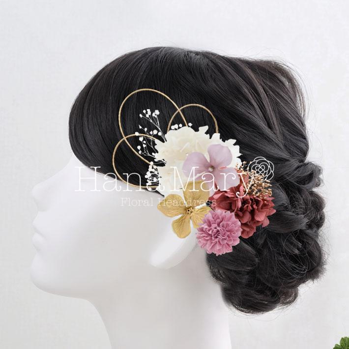 HanaMaryの髪飾りは生花をリアルに再現したアートフラワーと呼ばれるハイクオリティーな造花を使用しています。耐久性に優れ、成人式・卒業式やウェディングなどに何度でも繰り返し使用することができます。