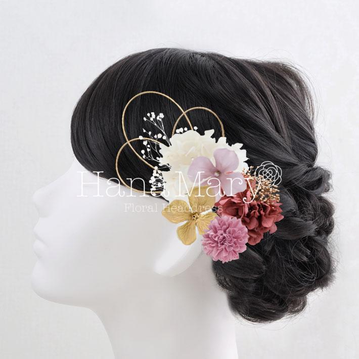 HanaMaryの髪飾りは生花をリアルに再現したアートフラワーと呼ばれるハイクオリティーな造花を使用しています。耐久性に優れ、成人式・卒業式やウェディングなどに何度でも繰り返し使用することができます。