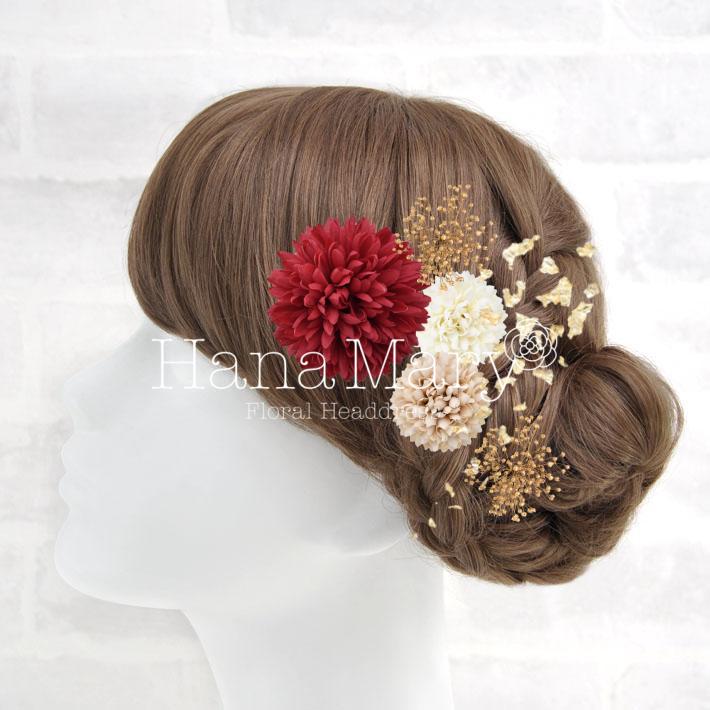 HanaMaryの髪飾りは生花をリアルに再現したアートフラワーと呼ばれるハイクオリティーな造花を使用しています。耐久性に優れ、成人式・卒業式やウェディングなどに何度でも繰り返し使用することができます。
