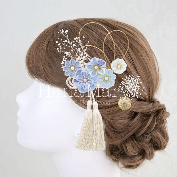 HanaMaryの髪飾りは生花をリアルに再現したアートフラワーと呼ばれるハイクオリティーな造花を使用しています。耐久性に優れ、成人式・卒業式やウェディングなどに何度でも繰り返し使用することができます。