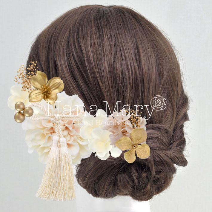 HanaMaryの髪飾りは生花をリアルに再現したアートフラワーと呼ばれるハイクオリティーな造花を使用しています。耐久性に優れ、成人式・卒業式やウェディングなどに何度でも繰り返し使用することができます。