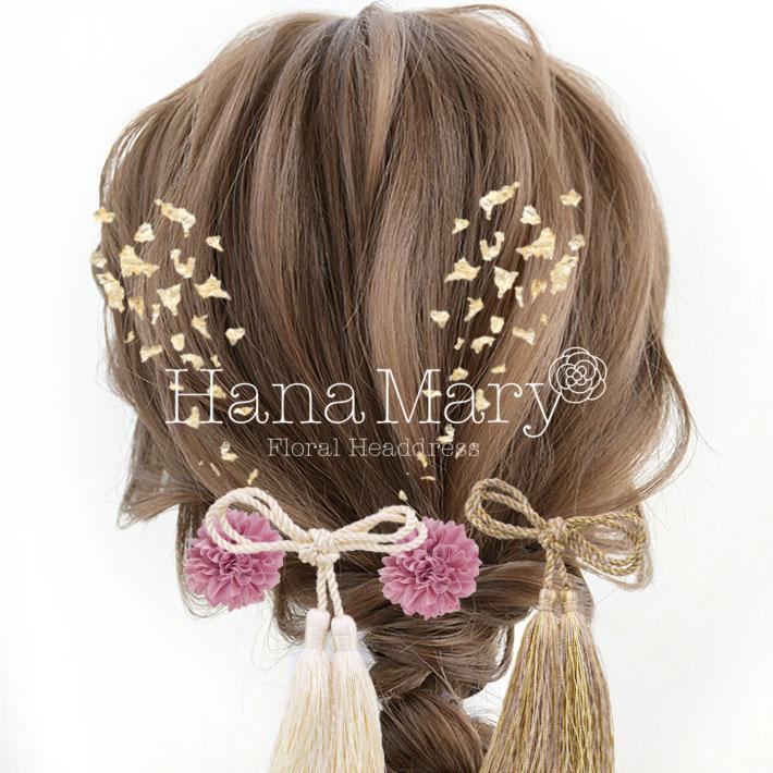 HanaMaryの髪飾りは生花をリアルに再現したアートフラワーと呼ばれるハイクオリティーな造花を使用しています。耐久性に優れ、成人式・卒業式やウェディングなどに何度でも繰り返し使用することができます。