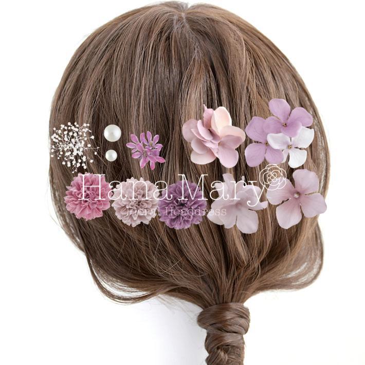 その日のヘアスタイルによって自由に一輪一輪配置できます。お花の数が多い場合でも、アメピンを追加して簡単にしっかりと固定できます。