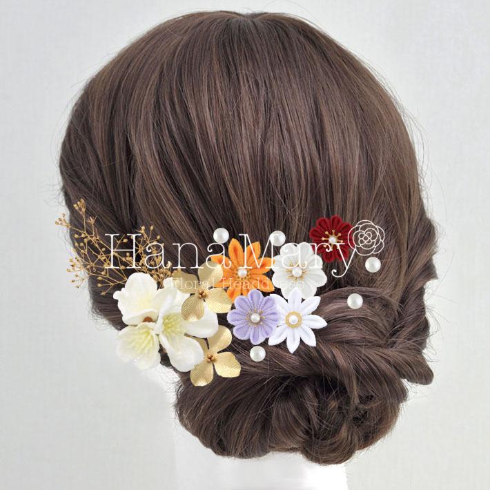HanaMaryの髪飾りは生花をリアルに再現したアートフラワーと呼ばれるハイクオリティーな造花を使用しています。耐久性に優れ、成人式・卒業式やウェディングなどに何度でも繰り返し使用することができます。