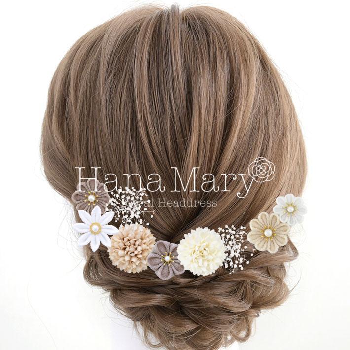 HanaMaryの髪飾りは生花をリアルに再現したアートフラワーと呼ばれるハイクオリティーな造花を使用しています。耐久性に優れ、成人式・卒業式やウェディングなどに何度でも繰り返し使用することができます。