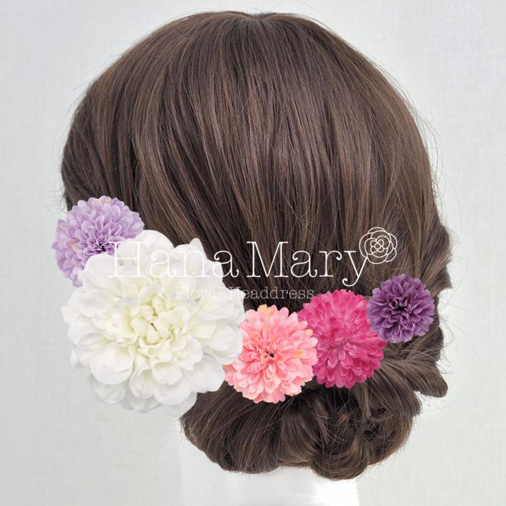 その日のヘアスタイルによって自由に一輪一輪配置できます。お花の数が多い場合でも、アメピンを追加して簡単にしっかりと固定できます。
